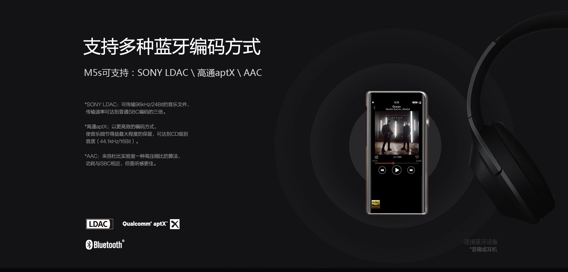 支持LDAC(雙向)、aptX(僅發射)、AAC(雙向)