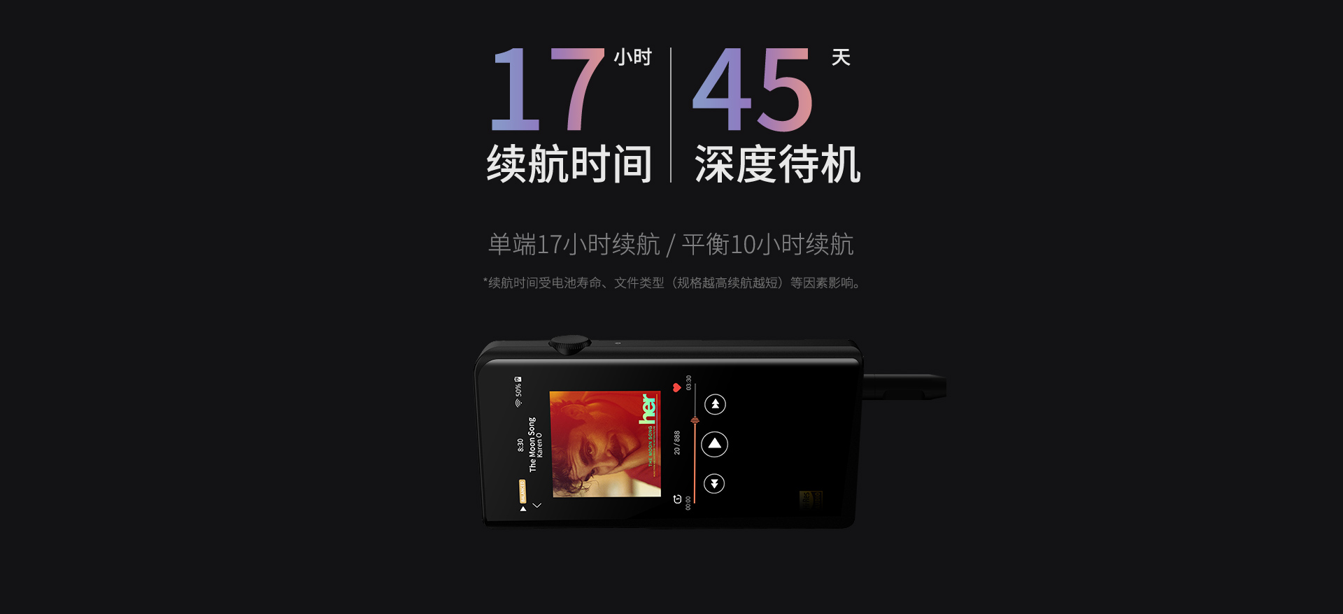 續航時間:16-17小時(單端輸出) 9-10小時(平衡輸出)